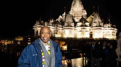 न्यूयॉर्क के मेयर एरिक एडम्स ने की अक्षरधाम मंदिर की यात्रा, प्रमुख स्वामी महाराज से की मुलाकात