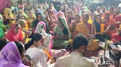 महिलाओं ने धरना दिया, भजन-कीर्तन के साथ विरोध प्रदर्शन