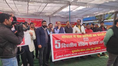 भोपाल की सड़कों पर उतरे बैंक कर्मचारी, सरकार से की पाँच दिवसीय सप्ताह की अपील