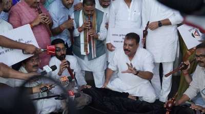 कांग्रेस ने विधानसभा में भैंस के सामने बीन बजाकर किया प्रदर्शन