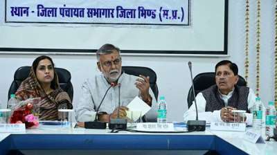 भोपाल : पंचायत एवं ग्रामीण विकास, श्रम मंत्री एवं भिंड जिले के प्रभारी मंत्री प्रहलाद सिंह पटेल की अध्यक्षता में बुधवार को जिला योजना समिति की बैठक जिला पंचायत सभागार...