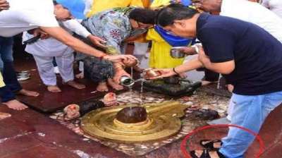 संभाग के सबसे बड़े अफसर ने चप्पल पहनकर किया महादेव का अभिषेक