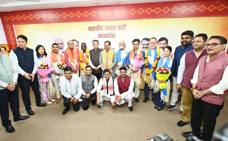 भोपाल। छह देशों के राजनीतिक दलों के एक प्रतिनिधिमंडल ने गुरुवार को भारतीय जनता पार्टी के प्रदेश अध्यक्ष एवं सांसद बीडी शर्मा से भाजपा प्रदेश कार्यालय में मुलाकात की। यह मुलाकात एक अभियान के तहत की गई है। इस दौरान विदेशी प्रतिनिधिमंडल को प्रदेश अध्यक्ष विष्णुदत्त शर्मा ने भाजपा की चुनावी रणनीति के संबंध में जानकारी उपलब्ध कराई। वहीं प्रतिनिधिमंडल ने प्रदेश मीडिया सेंटर का भ्रमण भी किया।