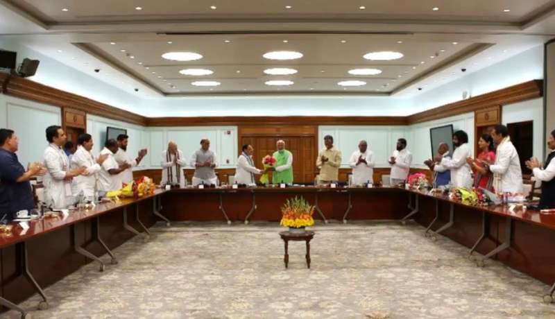 पीएम मोदी के नेतृत्व में हुई बैठक में टीडीपी अध्यक्ष एन चंद्रबाबू नायडू, जदयू नेता और बिहार के मुख्यमंत्री नीतीश कुमार, शिवसेना नेता और महाराष्ट्र के सीएम एकनाथ शिंदे और एलजेपी (रामविलास) नेता चिराग पासवान भी मौजूद रहे। बैठक में भाजपा के कई वरिष्ठ नेता भी शामिल हुए।