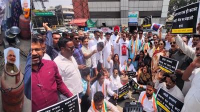 दुर्ग में गैस सिलेंडर कीमत बढ़ोतरी पर कांग्रेस का विरोध