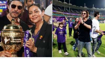 शाहरुख ने गंभीर के माथे को चूमा, गौरी-सुहाना और पूरी टीम के साथ खिंचवाई तस्वीर